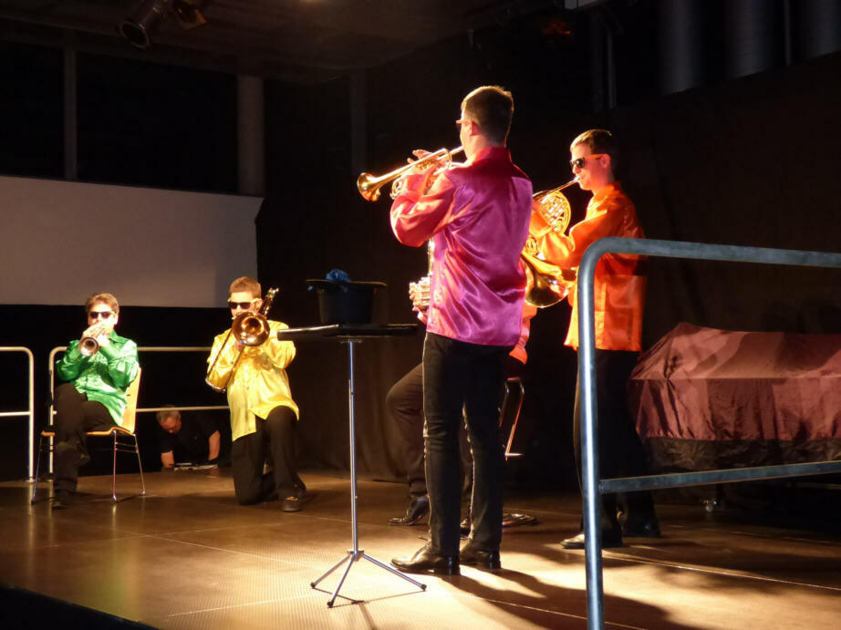 Treten fünf ausgezeichnete Bläser mit einem Zauberer auf, kann das nur „The Magic Brass Show“ sein. Beim Gastspiel im Wildoner Schloss wurde die doppelte Show von einem jungen Talent getoppt: Livia Jammernegg aus Wildon verzauberte mit Magier Paul Sommersguter (Bildmitte) das große Publikum. „Dead or Alive“ hieß das Programm, das zeigte, wie lebendig die Wildoner Kulturinitiative „Wild Kult“, ist: Das WildKult-Team lud zu weiteren Kabarett- Theater- und Konzertabenden, darunter zum Opernkabarett am 24. Juni mit Birgitta Wetzl & Bettina Wechselberger.